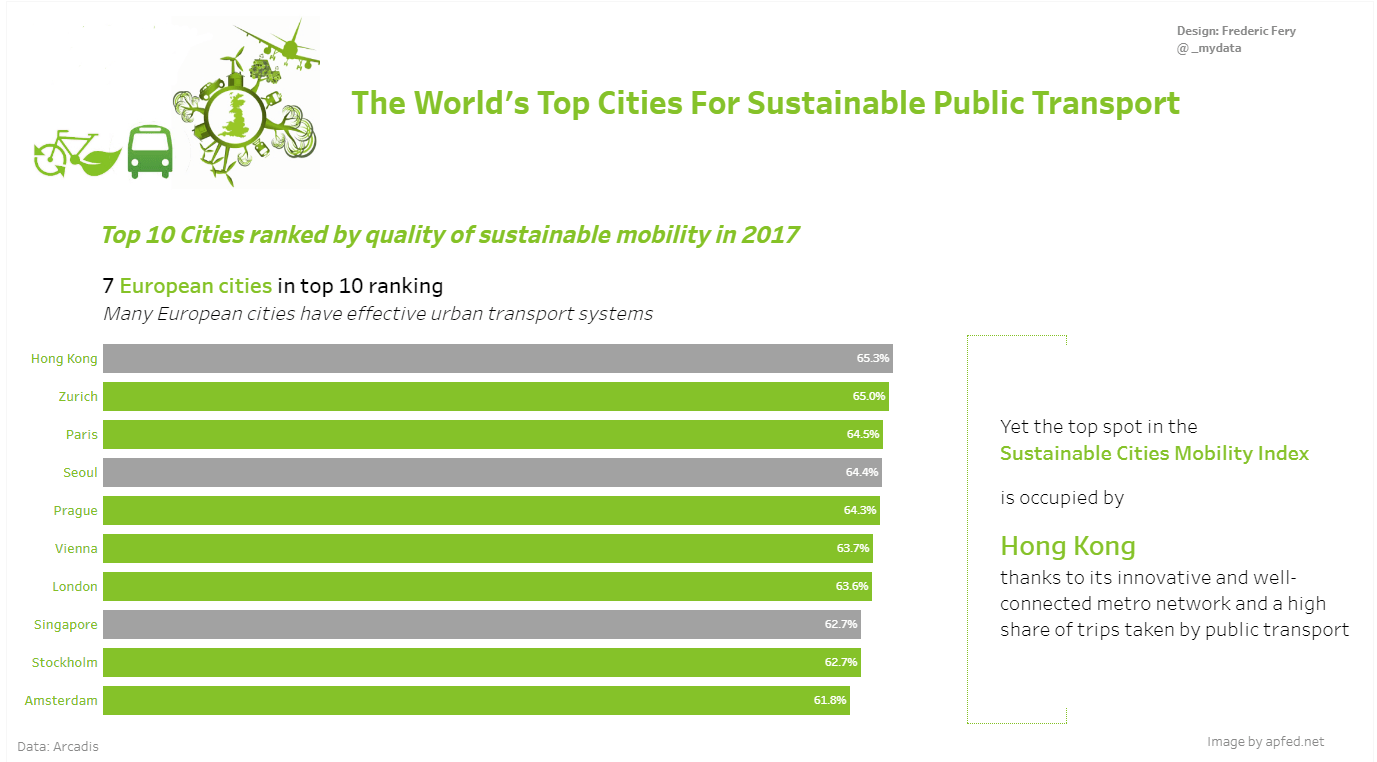 For this week Makeover Monday Week 46 we were asked to visualise data from Sustainable Cities Mobility Index (Arcadis report)