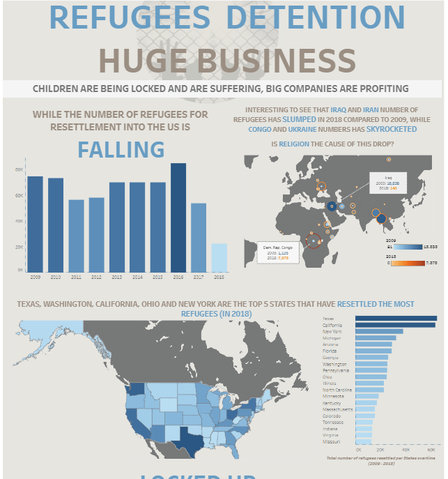 To explain how it started, after finishing my IronViz Refugees work, I decided to post it to Reddit dataisbeautiful to get feedback, engage and generate some discussion around this important topic. ie refugees and kids detained and companies making profit.