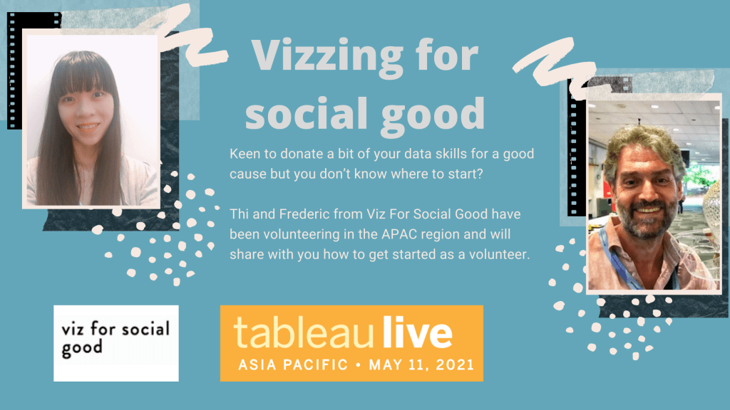 I had lots of fun carrying the Viz For Social Good flag at various forums, user groups. This session with Thi for Tableau Live APAC was really great!