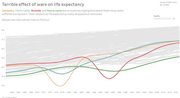 In this Makeover monday week 45, we were asked to visualise Life Expectancy at Birth by Country data from the World Bank My plan: As I try to learn new Tableau tricks I decided to follow Andy's tutorial to create Small multiple line charts, also adding dynamics labs following this tutorial from the Info Lab... Continue Reading →